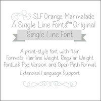 Introducing SLF Orange Marmalade—a sleek and playful single-line sans serif font. Perfect for crafting, engraving, and drawing, this versatile design brings a fresh and modern touch to your projects!