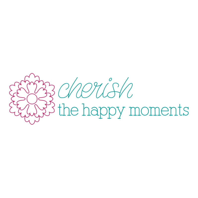 "Cherish the Happy Moments" design has a flower beside the sentiment.