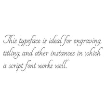 A flowing, formal script with elongated lettering for your most elegant creations.  Use for wedding stationery, card making, and foil quilling.